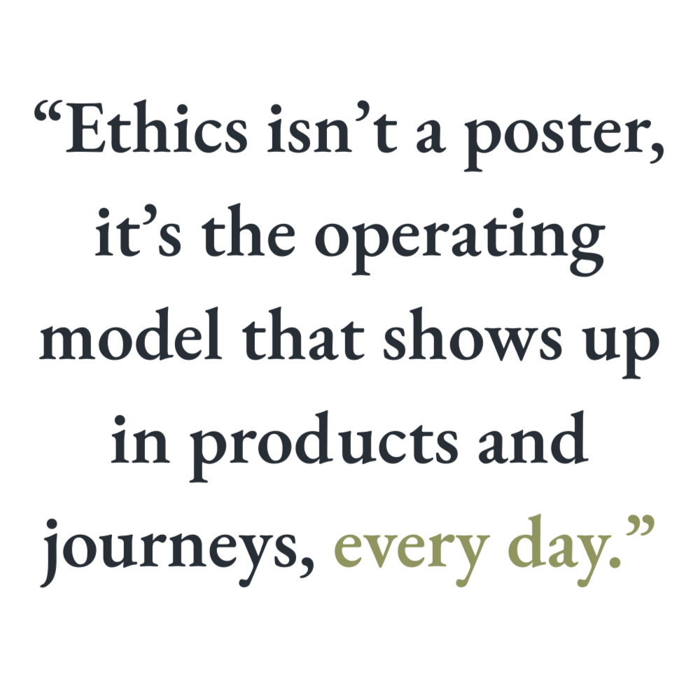 A final thought: ethics is often seen as an expense - I think it’s better to view ethics as the discipline of building trust and sustainable long-term growth. Trust is not abstract. It is a series of decisions that either make customers’ lives easier or harder; that either make it safer for staff to tell the truth or riskier.
